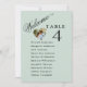 Welcome in stylish script to assist your guests find their table with these elegant modern seating plan cards with guests names. Double sided cards so guests can look from both, front or back for their names. Sage green background and black text with a touch of a drop shadow on the table number as well as room for a photo. Several colour options. Have all table numbers in same colour or mix colours according to your event's colour theme. The card prints on the front and back (double-sided). If you have any design questions, just send a chat and we'll be delighted to assist.