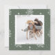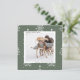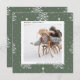 Modern Christmas | Holiday photo square card on a sage green and white pine tree pattern background.