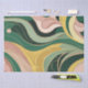 This gorgeous gift wrapping tissue paper features a stunning boho pattern with abstract organic lines in a beautiful combination of sage green, dusty pink, and sunny ochre yellow.