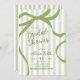 Sage Green Quirky Stripes Bridal Shower Invitation, Sage Green Coquette Bow Fête des mariées Invitation