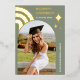 Celebrate your graduation in style with this unique sage green graduation announcement! This eye-catching design features a modern arch with delicate stars and a whimsical rainbow, all printed in real gold foil for a touch of luxury. The sage green background adds a touch of sophistication. Personalize it with your name, school, class year, and a special message to create a truly unique keepsake. Perfect for sharing your achievement with friends and family. Printed on high-quality card stock with a variety of paper types and finishes to choose from.