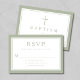 Sage Green Religious Cross Boy Baptism RSVP Card