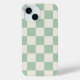 Trendy boho chequerboard print phone case in sage green and off-white colours. Use the design tools to add your own monogram, name or other text, or change the background colour to create a unique one of a kind device cover.
