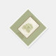 This sage green wedding napkin captures the romantic atmosphere of a cozy garden café, framed by soft botanical details and vintage charm. The gentle sage tones bring a sense of calm, elegance, and timeless beauty, making it ideal for couples who dream of a wedding inspired by nature, outdoor venues, or rustic courtyard settings. The delicate bicycle with flowers, leafy border, and charming café backdrop create a warm and welcoming scene that feels both intimate and refined.