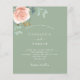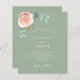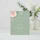 A sage green background. Decorated with a rose gold and blush pink floral, rose flower and green watercolored eucalyptus leaves, sprigs, greenery and faux gold sprigs. Personalize and add your names and wedding details.