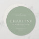 A minimalist round wedding menu featuring a soft sage green and ivory color palette.