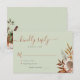 Modern rustic watercolor botanical flowers, pumpkin, foliage, pampas grass and dried leaves making a chic autumn-fall wedding invitation kindly reply script sage green RSVP card with a trendy handwriting calligraphy script and an earthy terracotta beige color palette