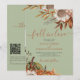 Modern rustic watercolor floral botanical boho flowers, pumpkin, foliage, and dried leaves making a chic autumn budget all in one online rsvp details wedding invitation with a trendy handwriting calligraphy script and earthy terracotta beige color palette on a soft sage green background. ++++++++++++++++ Personalize it with your photo and QR code to your website or to RSVP online.