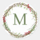 Sage Green Rustic Christmas Wreath Monogram Classic Round Sticker