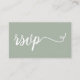 The sage green motif colour adds a touch of sophistication and blends beautifully with the elegant script typography. The script font used for the word "rsvp" is adorned with long-tailed embellishments, adding a stylish and graceful element to the design.