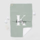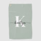 This simple, modern golf towel with your first name in a trendy script font in black and your first initial in a modern cap font in white on sage green is perfect for you.  It's stylish and trendy and yet very classic. It's unique - like you!  Get a couple so you always have a clean one on hand.