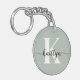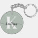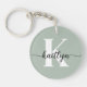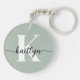 This modern sage green keychain with your first name in a trendy script font in black and your first initial in a modern cap font in white is perfect for your keys. It's stylish and trendy and yet very classic.