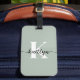 This simple, elegant sage green luggage tag with your first name in a trendy script font in black and your first initial in a modern cap font in white on one side and a slide in card for your name, address and phone number on the other would look fabulous on your suitcases. It's stylish and trendy and yet very classic.