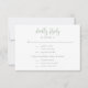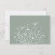 Ce botanique fleur sauvage RSVP vert et blanc sauge est élégant et simple. L'avant est minime avec la typographie de script. Le dos présente la même floraison délicate mais audacieuse présentée sur votre invitation.