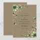 This design showcases a sophisticated palette of sage green and earthy tan, ideal for a polished seasonal event. Artistic watercolor green pumpkins are nestled among shimmering bronze-toned autumn foliage and delicate sprigs. This aesthetic radiates a warm, rustic atmosphere that perfectly captures the essence of a tranquil harvest theme.