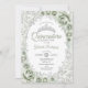 Invitation de célébration de Quinceanera vert sauge argent. Caractéristiques, police de caractères script, papillons argentés, roses aquarelles et couronne. Parfait pour une célébration glamour de style princesse élégante. Personnalisez avec vos propres détails. Cartes d'invitation Zazzle imprimées ou modèle de gabarit numérique imprimable instantané.