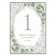 Sage green silver Quinceanera celebration table number cards. Features, script font, silver butterflies, watercolor roses and tiara. Perfect for an elegant princess style glam celebration. Personalize with your own details. Printed Zazzle invitations or instant download digital printable template.