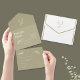 Grab your guests full attention in this sage green and solid white bold yet simple colours. This design pairs well as a classy touch of modern flair with simple elements and templates to use.
