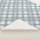 This cozy sherpa fleece blanket features a diagonal plaid pattern in shades of slate blue, sage green and cream.