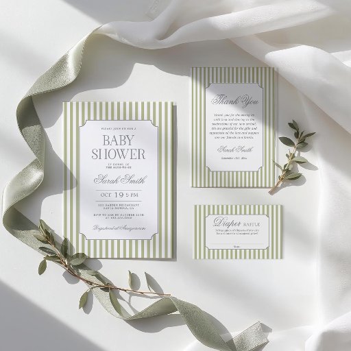 Sage Green Stripes Baby Shower CollectionDesigned by Iolan Gloria