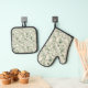 Sage Green Terrazzo Effect Kitchen Oven Mitt & Pot Holder Set