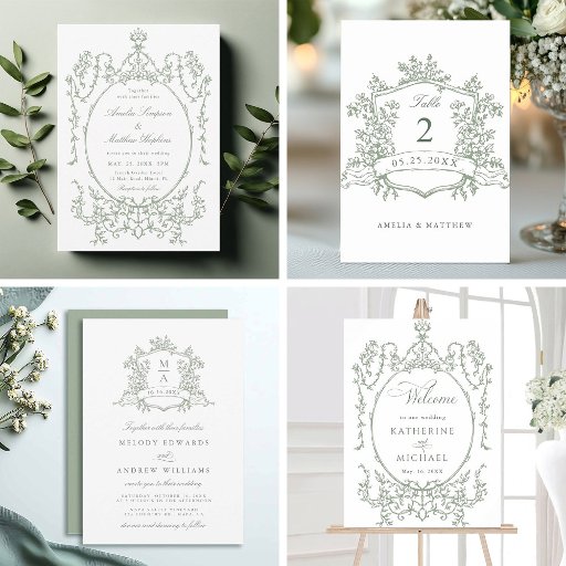 Classic Floral Garden Frame Sage Green Wedding Designed by Flora