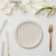 These floral paper plates showcase delicate pink roses arranged in a graceful vintage stripe pattern on a sage green background. The soothing color palette adds elegance and warmth to your baby shower tables.