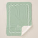 Sage Green Wavy Border Monogrammed Sherpa Blanket