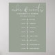 Elegant sage-green wedding order-of-events timeline sign. Designed by Thisisnotme©