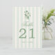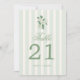 Sage green wedding table number cards featuring elegant script, soft stripes, and delicate floral accents. These customizable reception table numbers help guests find their seats while adding a cohesive, romantic touch to your garden, cottagecore, or vintage inspired wedding decor.