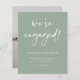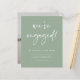 We are engaged! Announce your engagement to family and friends with this customizable photo engagement announcement. It features modern calligraphy and simple typography. This sage green engagement announcement is available in other colours. Personalize by adding your photos, names and other details.