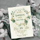 Beautiful romantic bridal shower invitations featuring sage green and white flowers and some pretty leaves .