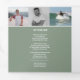 Simple modern graphic funeral program square shaped in a muted sage green and white. Replace the sample text and twelve placeholder photos with your own special photos and memorial order of service, obituary, reading or poem, and acknowledgments, special quote and personal information details. Other matching funeral keepsake remembrance items are available. This is idea for outdoor enthusiasts lovers of nature and plants and male gardeners. Design by Sarah Trett for www.mylittleeden.com