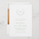 Elegant wedding save the date featuring a clean and timeless design with your monogram inside of a wreath crest. The back has your favourite photo and a QR Code.