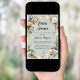 A sage green background. Decorated with white and yellow florals and a golden ribbon. Personalize and add the name of the Bride to be and details.