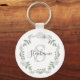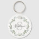 This design features a wreath of watercolor foliage in shades of sage green and grey. Personalize the text inside the wreath with a name in charcoal grey/off-black handwriting style calligraphy and a monogram initial in light grey open serif type. Makes a great bridal party gift!