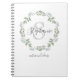 This elegant personalized notebook features a wreath of watercolor foliage in shades of sage green and grey encircling the name in modern charcoal grey/off-black handwriting style script and the monogram initial in light grey open serif type. Below the wreath is a line that reads "notes and ideas"--or customize it with your own text. See our Sage Greenery Botanical collection for coordinating designs.