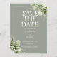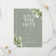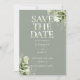 This elegant sage green save-the-date invitation featuring greenery floral typography can be personalized with your information in chic lettering and your wedding website QR code and details on the reverse. Designed by Thisisnotme©