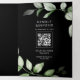 Sage Greenery Gold Ampersand QR Code Black Wedding Tri-Fold Invitation