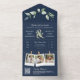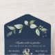 Sage Greenery Gold Ampersand QR Code Navy Wedding All In One Invitation
