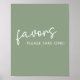 Make your bridal shower an elegant affair with the Sage Minimalist Script Bridal Shower Favours Poster. This modern design features clean lines and a simple script font in a soothing sage green that sets a refined tone for your special day. With its simple yet sophisticated styling, this poster is ideal for showcasing your bridal shower favours. The minimalist sage green script makes a chic statement without overpowering your decor. Give your guests a warm welcome with this modern design that sets the perfect tone for your shower celebrations. Perfect for the bride looking for bridal shower accents that are simple, elegant and a touch unexpected. This poster adds a pop of soft colour and modern flair that shows off your personal style. Display it as the focal point of your favours table or bar to highlight all the special treats you've picked out for your guests. The minimalist design ensures all eyes stay on you - the guest of honour!