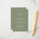 This simple and modern wedding enclosure card features white crest, leaves, and text on a sage green background. The back of the card is sage green. This is part of the Simple Crest & Leaves collection.