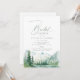 Watercolor lush green pine forest, teal river, and misty mountain with sage modern script, elegant and romantic, great for boho rustic bridal shower and mountain forest destination wedding in spring and summer.