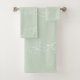This sage bathroom towel set has a sage background but you can customize it with a different colour to match your bathroom decor.