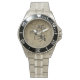 Has heft and feel of expensive stainless steel quartz watches. Good band with safety catch.  I removed links, which is easy because engraved arrows show direction to push the linking pins. As always by this seller, the image (a railroad logo) is a perfect reproduction of my emailed image, and is precisely spaced and aligned.
