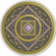 This mandala was designed for the zodiac sign, Sagittarius, depicting an amethyst stone in the centre surrounded by elements representing the sign, such as the symbol for the sign, the constellation, and the alchemical symbol for Fire, as well as filigree vines and weaves wrapping it all into a solid image in shades of purple, gold, and black.