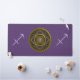 This mandala was designed for the zodiac sign, Sagittarius, depicting an amethyst stone in the centre surrounded by elements representing the sign, such as the symbol for the sign, the constellation, and the alchemical symbol for Fire, as well as filigree vines and weaves wrapping it all into a solid image in shades of purple, gold, and black.