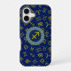 Sagittarius Zodiac+Astrology Symbols Ptn Gld+Blues iPhone 16 Case