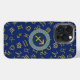 Sagittarius Zodiac+Astrology Symbols Ptn Gld+Blues iPhone Case
