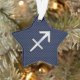 Un panneau en chrome argenté comme Sagittarius zodiac sur un arrière - plan d'impression en fibre de carbone bleu marine de style automobile. Un design urbain moderne et racé pour une idée cadeau d'anniversaire sur mesure. Les motifs de broderie sont disponibles dans une sélection d'options de couleurs populaires. Utilisez le lien "Demandez à ce concepteur" pour nous contacter pour vos demandes spéciales de design ou pour obtenir de l'aide pour votre projet de personnalisation.